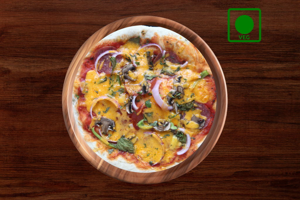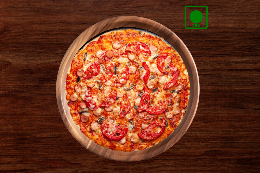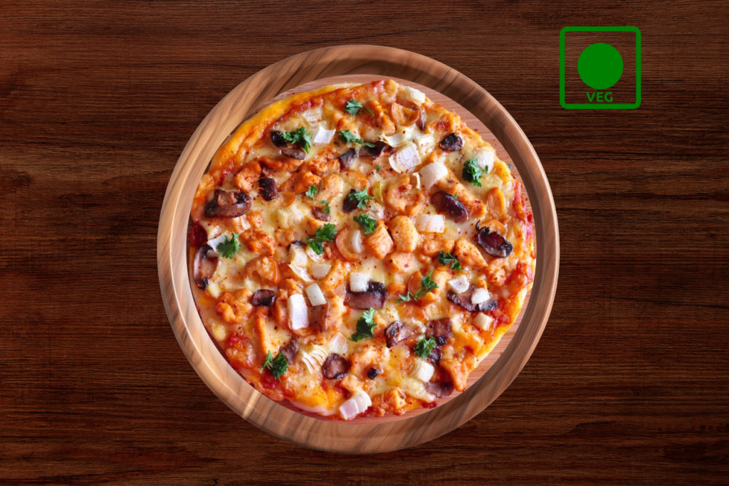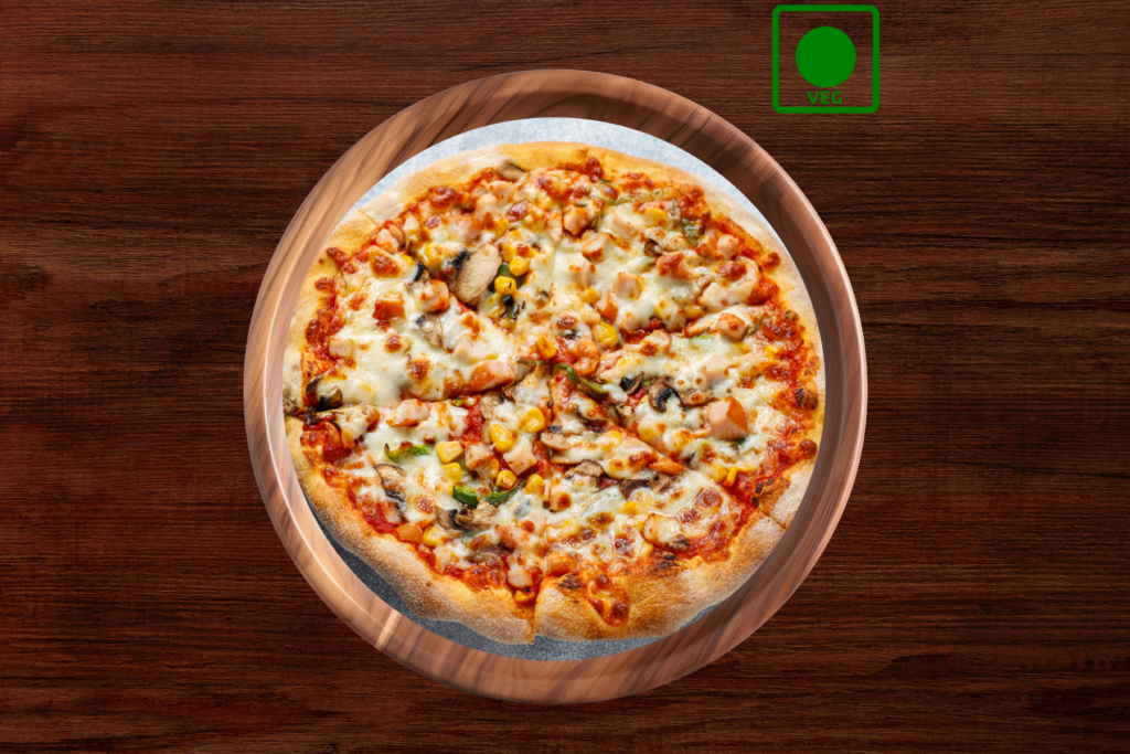 A fresh pan crust topped with juicy tomatoes, jalapenos, corn, grilled mushrooms, and crushed Aranchini patty for a flavor-packed bite.